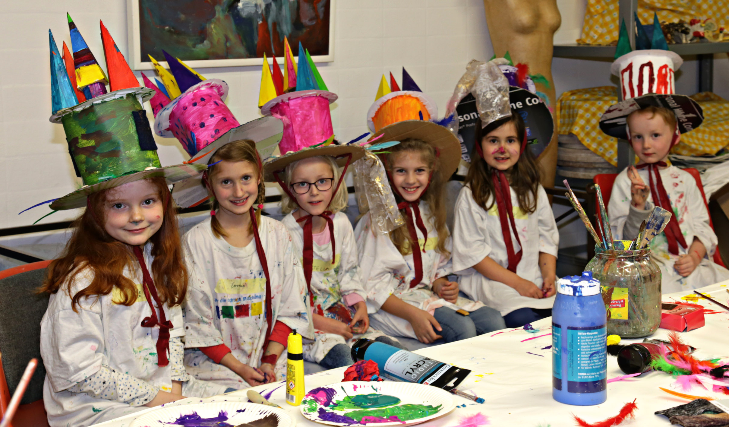 Heute fand der Kurs „Mein Stadtturm-Hut“ in der Schule der Phantasie statt. Die Kinder gestalteten ihren EIGENEN Stadtturm-Hut. Verschiedenste Farben und Variationen konnten wir sehen. Unser Stadtturm mal anders….verziert mit Federn, Stoffen oder Muscheln 🙂