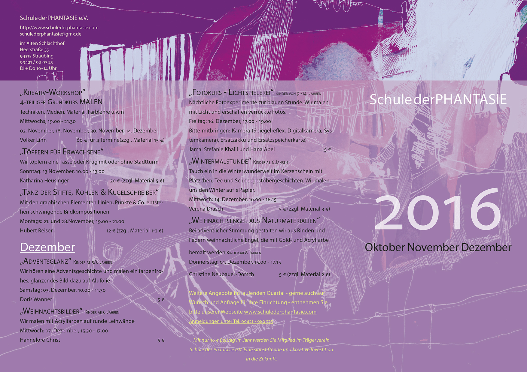 Neu: Kurse 4. Quartal 2016 Verfasst von schulederphantasie am 18. August 201618. August 2016 Neue Kurse für das 4. Quartal 2016 Anmeldung telefonisch unter: 09421 – 98 97 25 Teilen mit: Klick, um auf Facebook zu teilen (Wird in neuem Fenster geöffnet) Facebook Klicken, um einem Freund einen Link per E-Mail zu senden (Wird in neuem Fenster geöffnet) E-Mail Gefällt mir Wird geladen …