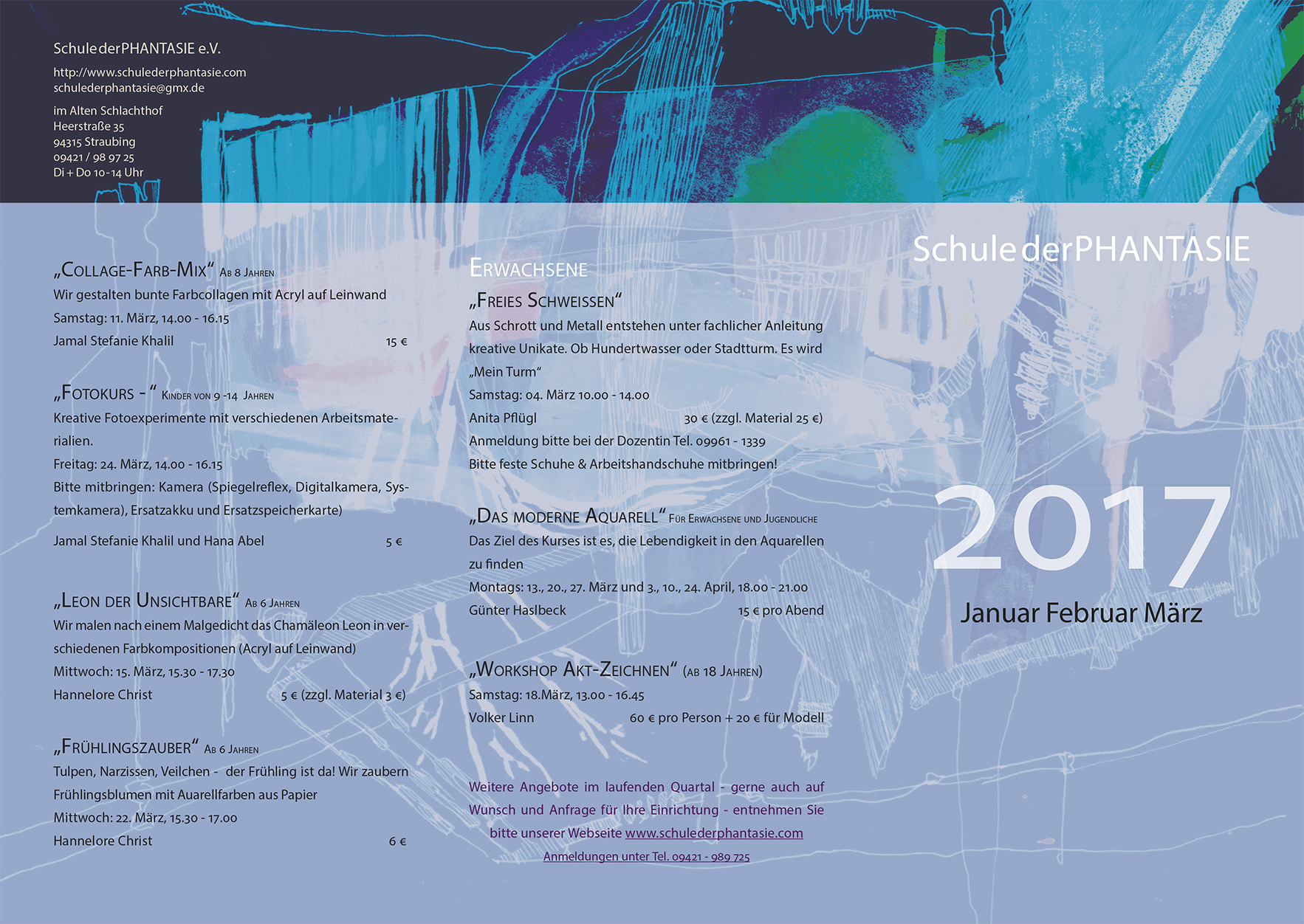 Neu: Kurse 1. Quartal 2017 Verfasst von schulederphantasie am 7. Dezember 20169. Dezember 2016 Die neuen Kursangebote sind da 🙂 Neue Kurse für das 1. Quartal 2017 Anmeldung telefonisch unter: 09421 – 98 97 25 Merken Teilen mit: Klick, um auf Facebook zu teilen (Wird in neuem Fenster geöffnet) Facebook Klicken, um einem Freund einen Link per E-Mail zu senden (Wird in neuem Fenster geöffnet) E-Mail Gefällt mir Wird geladen …