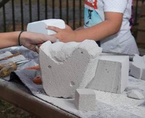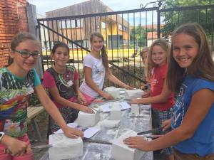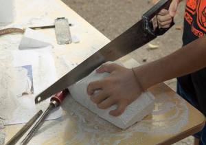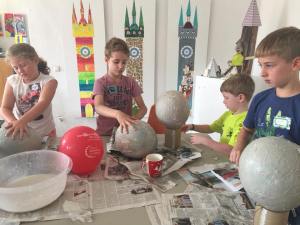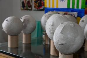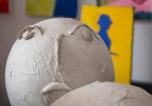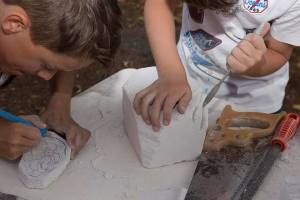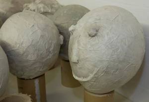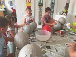 Mit Pappmaché formten wir unsere Köpfe, sie müssen jetzt trocknen und dann werden sie bemalt. Am Nachmittag entstanden mit Hammer und Meißel aus Stein phantasievolle Figuren! Wir waren richtige Bildhauer – super!