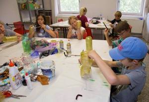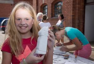 Army begeisterte mit ihrer Stabpuppe und anschließend machten sich alle eifrig ans Werk eine eigene Puppe zu erschaffen. Bei Katharina konnte man eine Schildkrötenschale aus Ton töpfern und bei Anita wurde es richtig märchenhaft! Der Flaschengeist tauchte auf und verschwand dann ganz schnell wieder in seiner Flasche! Ein super kreativer – heißer -Tag mit kurzer Wasserdusche! Und morgen geht’s weiter!