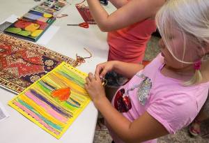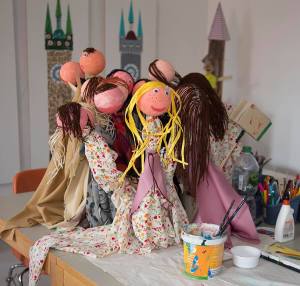 Heute arbeiteten wir mit Papier und Holz und mit unserer Stimme! Corinna sang mit uns, mit Manfred und Doris zauberten wir einen fliegenden Teppich und mit Nadja und Maria kreierten wir orientalische Papierschönheiten!