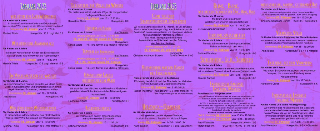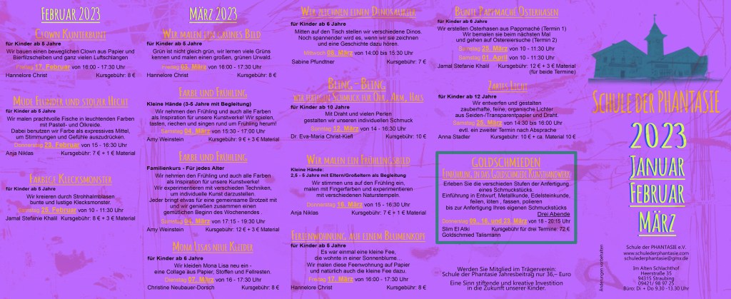 Kurse Januar, Februar, März 2023 Verfasst von schulederphantasie am 13. Dezember 202213. Dezember 2022 Teilen mit: Klick, um auf Facebook zu teilen (Wird in neuem Fenster geöffnet) Facebook Klicken, um einem Freund einen Link per E-Mail zu senden (Wird in neuem Fenster geöffnet) E-Mail Gefällt mir Wird geladen …