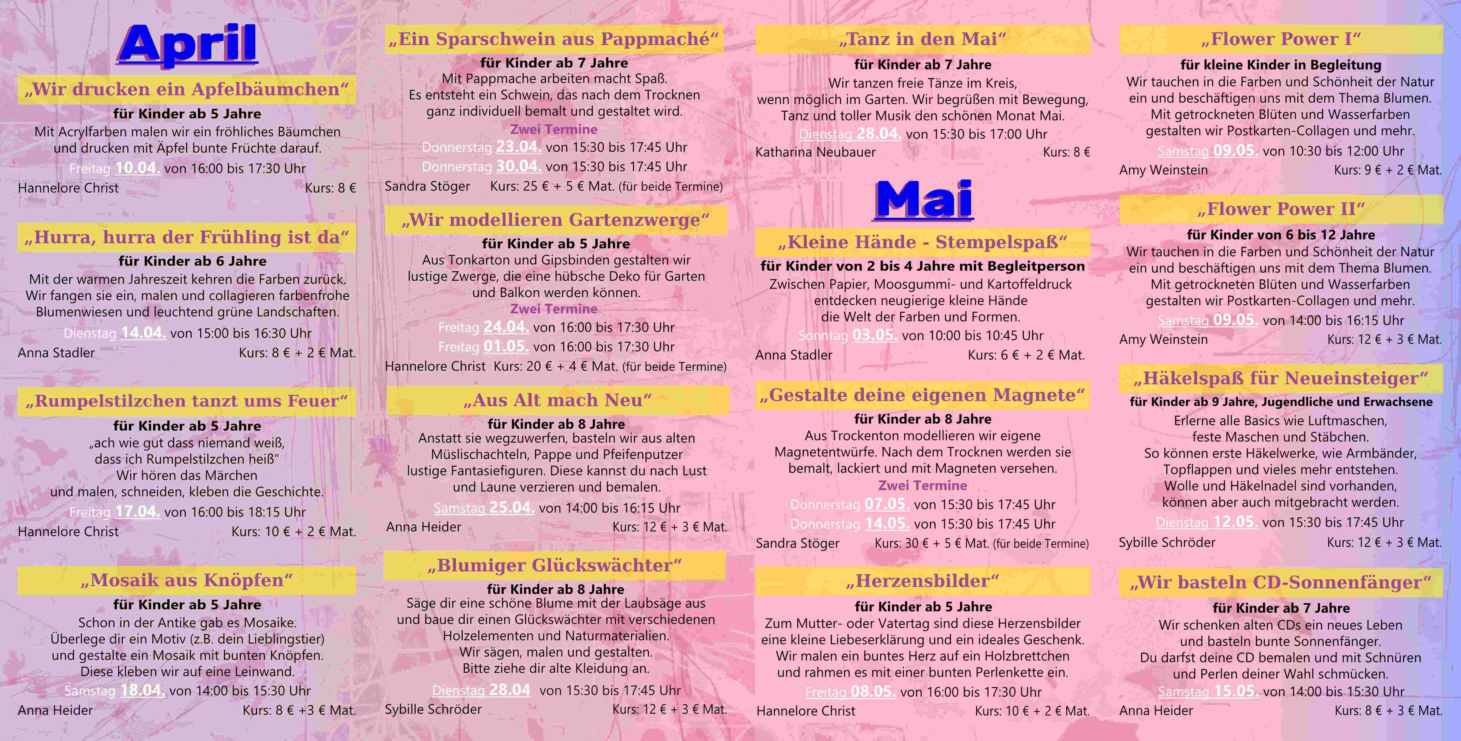 Bei Anmeldungen bitte immer mit Angabe der Telefonnummer!